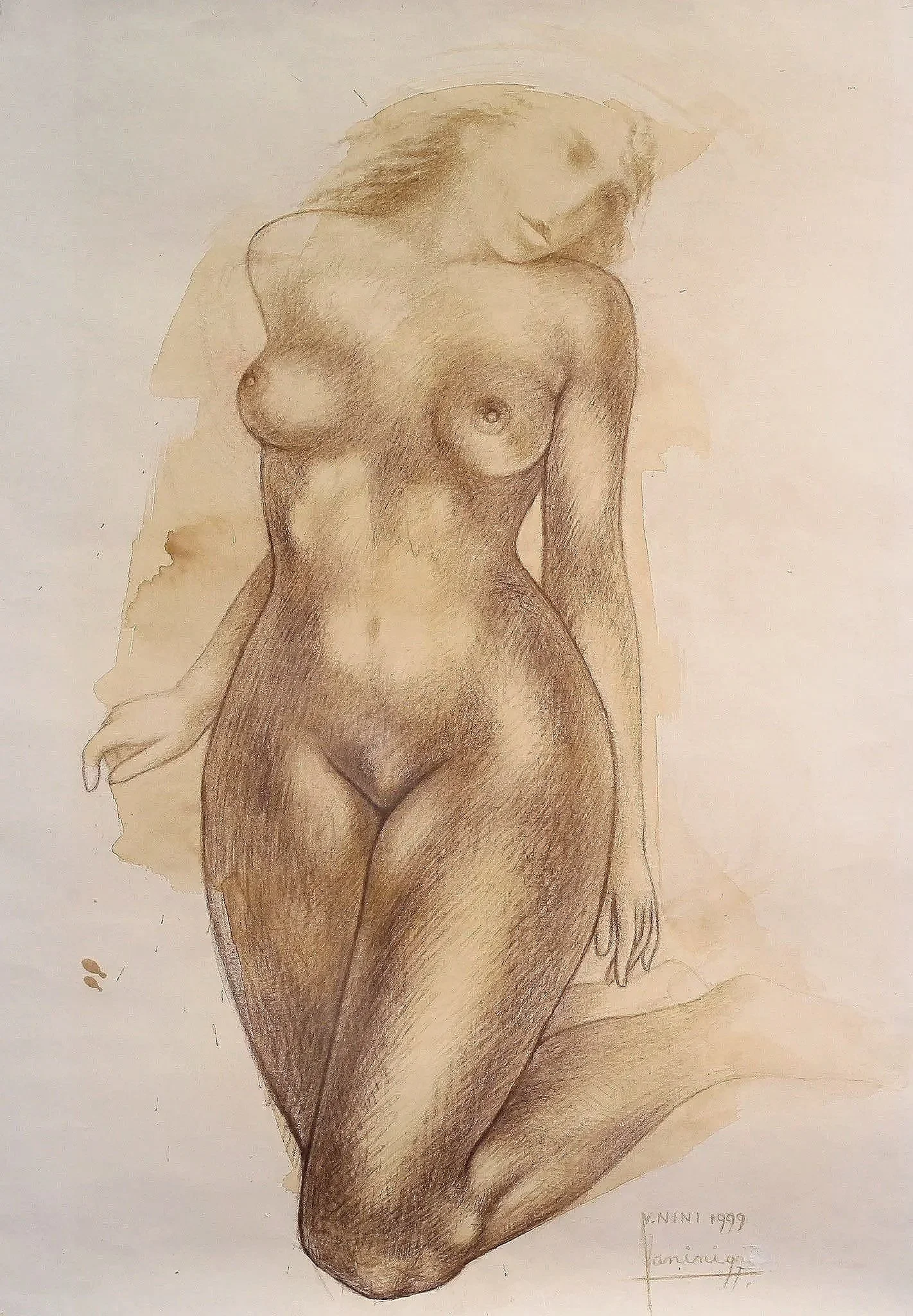 "Lounge, 1999", Coffee and Colored Pencil on Paper, 14" x 24"